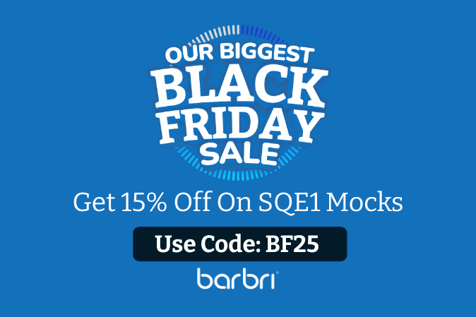 | SQE1 Boost Black Friday Offer: 15% off course - use code BF25 | SQE1 Mocks Black Friday Offer: 15% off course - use code BF25 | Recommended SQE1 Prep | ||
