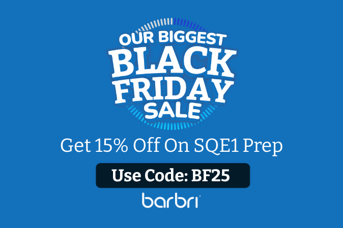 Our Black Friday sale is here, and we're offering 15% off select SQE1 Prep courses. Begin your SQE journey with BABRRI and take your first step towards a successful career in law.